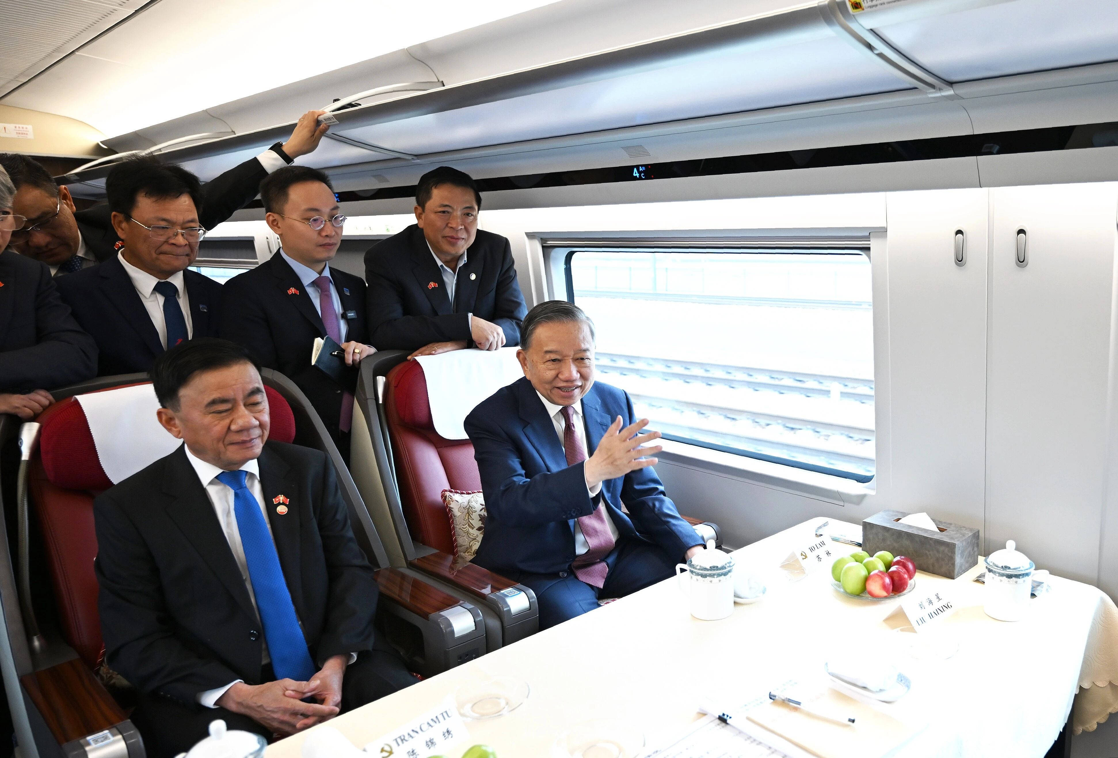 4月16日上午,越共中央总书记、国家主席苏林乘高铁离开北京,启程前往广西,继续在中国的访问行程。新华社记者 戴天放 摄这是继14日搭乘高铁赴雄安新区参访后,苏林此次访华期间第二次选择乘坐高铁。这趟途经河北、河南、湖北、湖南等多个省份,里程超2400公里,车程约10小时的高铁旅程,也是一次沉浸式感受中国式现代化万千气象的独特体验。
